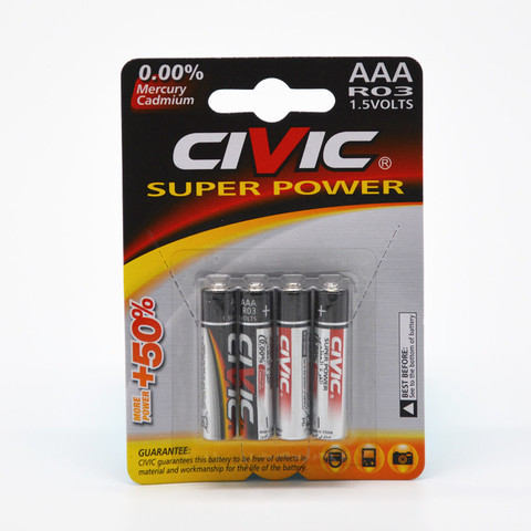 R03 UM4 Khô Pin AAA 1.5 v Kẽm Carbon cho Điều Khiển Từ Xa Thẻ Vỉ Civic 30 Phút